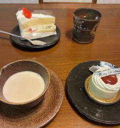 | 今年は家で過ごしました。毎年イブはクリームシチューです。今年は、いただいたカブで作ったシチューです。 ささやかにケーキを買ってクリスマス気分です。私は日本茶。美味しくいただきました。 |
