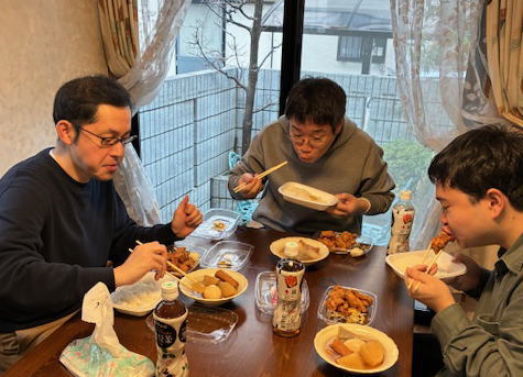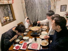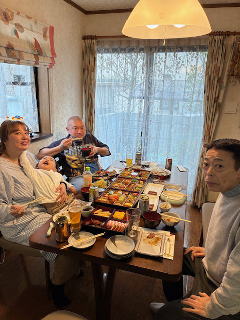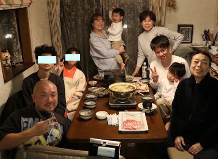 | 仕事に行く前に集合。一旦、私は留守にして午後から参加。夜まで大騒ぎ。家族が集まれるようになったんですね。 鍋もできるようになりました。健康で笑って過ごせる一年を願っています。いいお正月でした。 今年もよろしくお願い申し上げます。 |