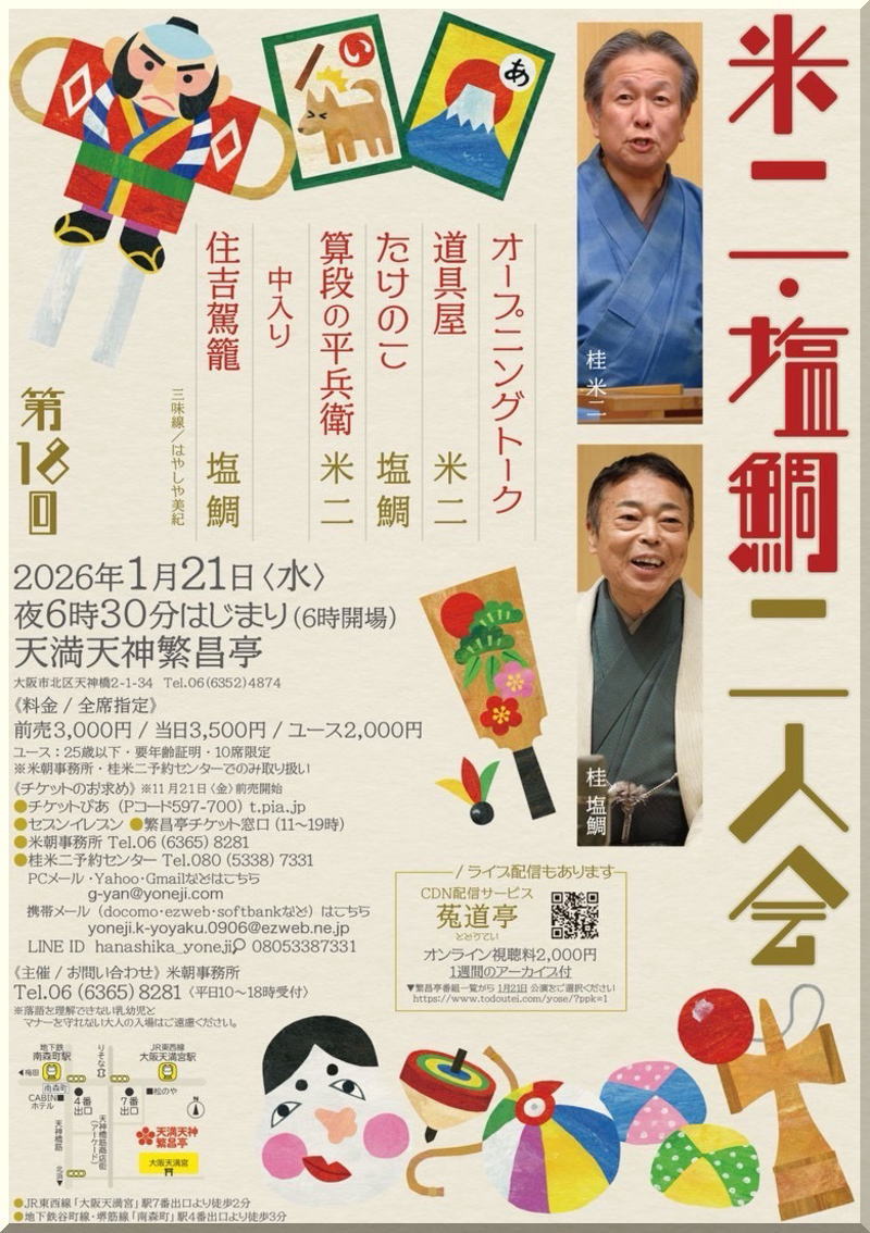大阪の落語家桂塩鯛です。このページは落語好きのみなさんとふれあう言いたい放題わがままページです。