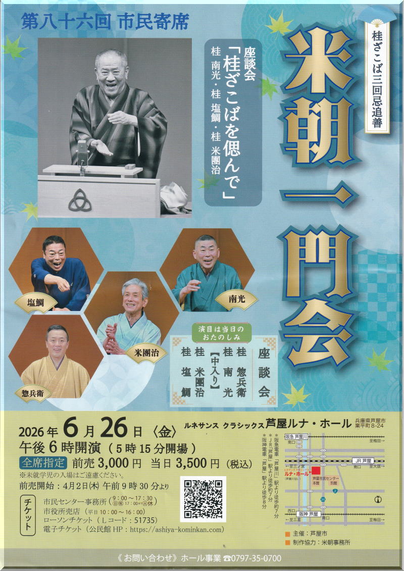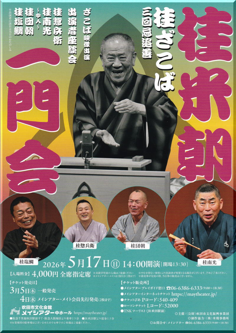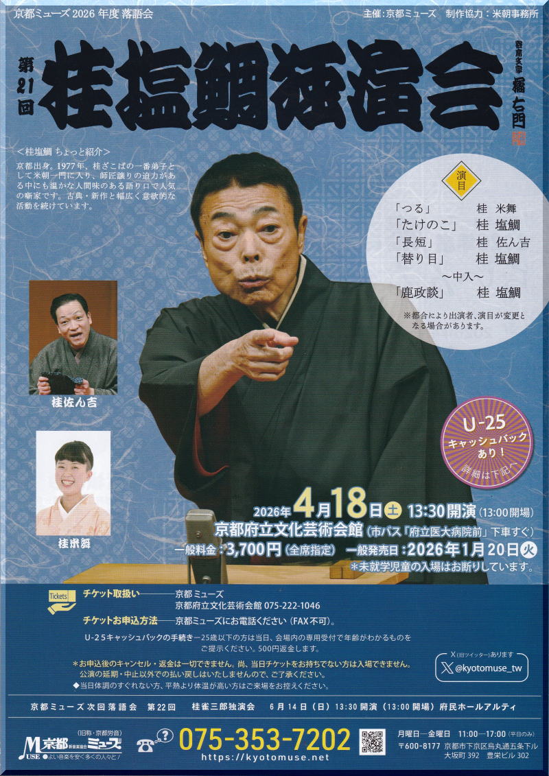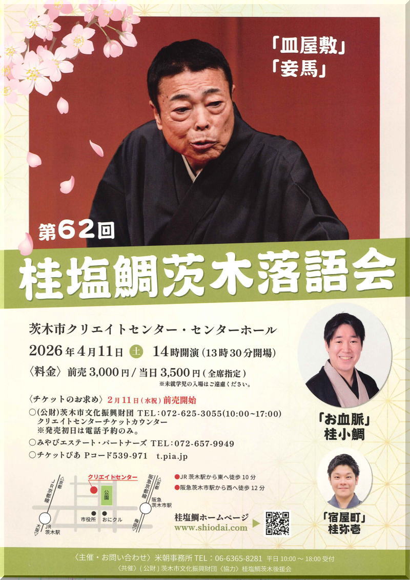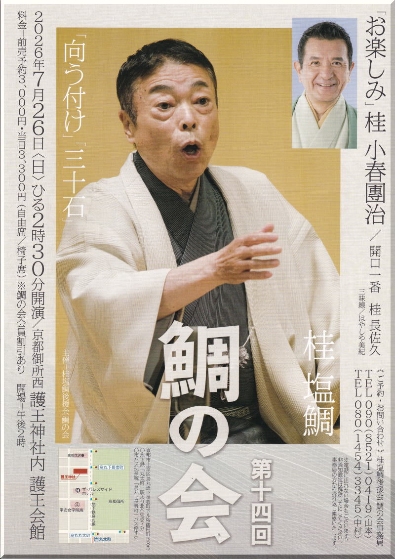 大阪の落語家桂塩鯛です。このページは落語好きのみなさんとふれあう言いたい放題わがままページです。